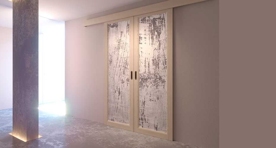 Раздвижные межкомнатные двери монтируются с использованием специального рельсово-роликового механизма.