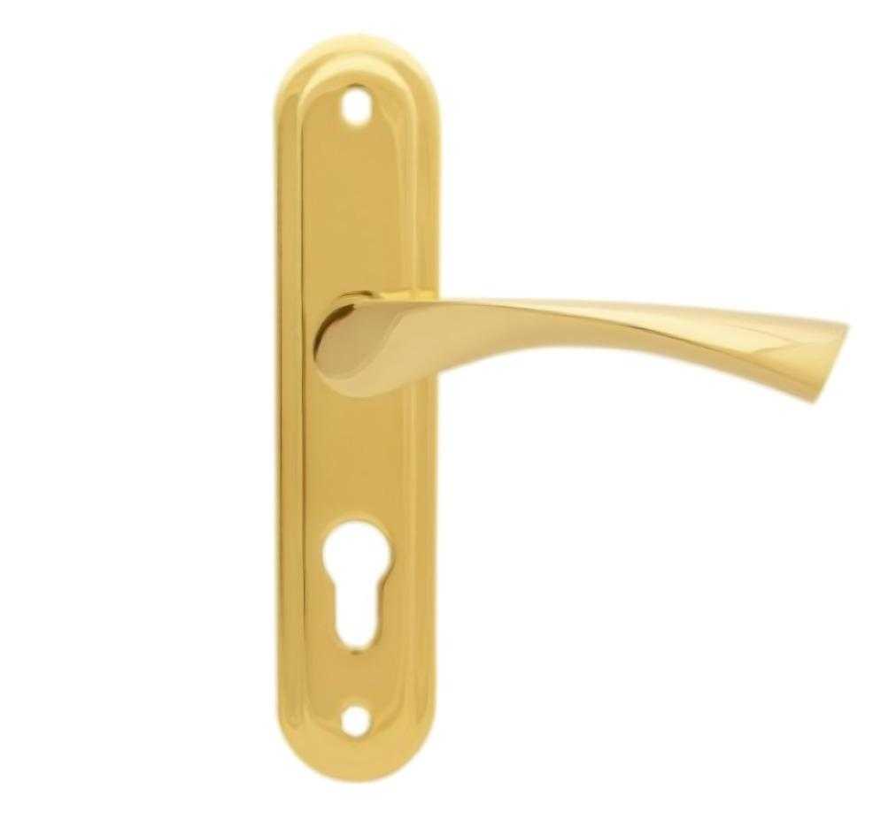 - Лидером считается латунь. Этот сплав применяется как в бюджетных моделях, так и в изделиях премиального сегмента. Латунные ручки исправно служат владельцам старинных замков и особняков. К плюсам латуни эксперты относят прочность, доступность и приятные тактильные ощущения.