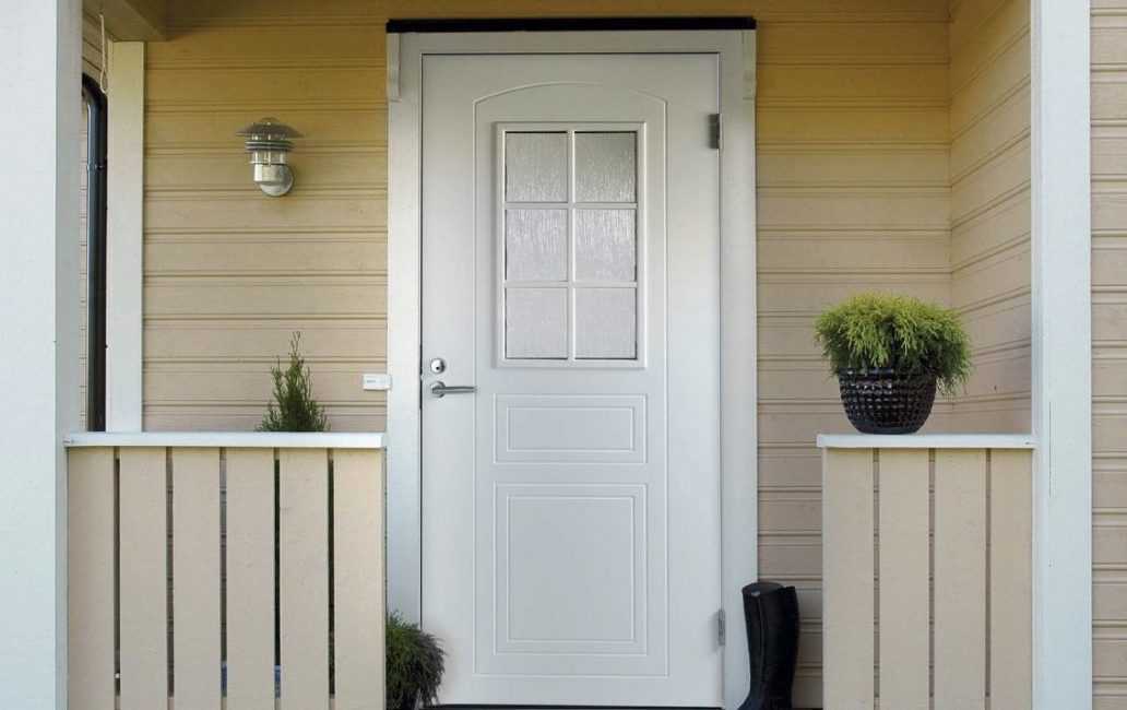 Раньше входные модели белого цвета олицетворяли общественные заведения, сегодня это красивые, парадный вход в жилой дом. Ее можно увидеть в шикарных коттеджах, а также в аккуратных частных домиках, в первом и втором варианте смотрится празднично и эстетично.