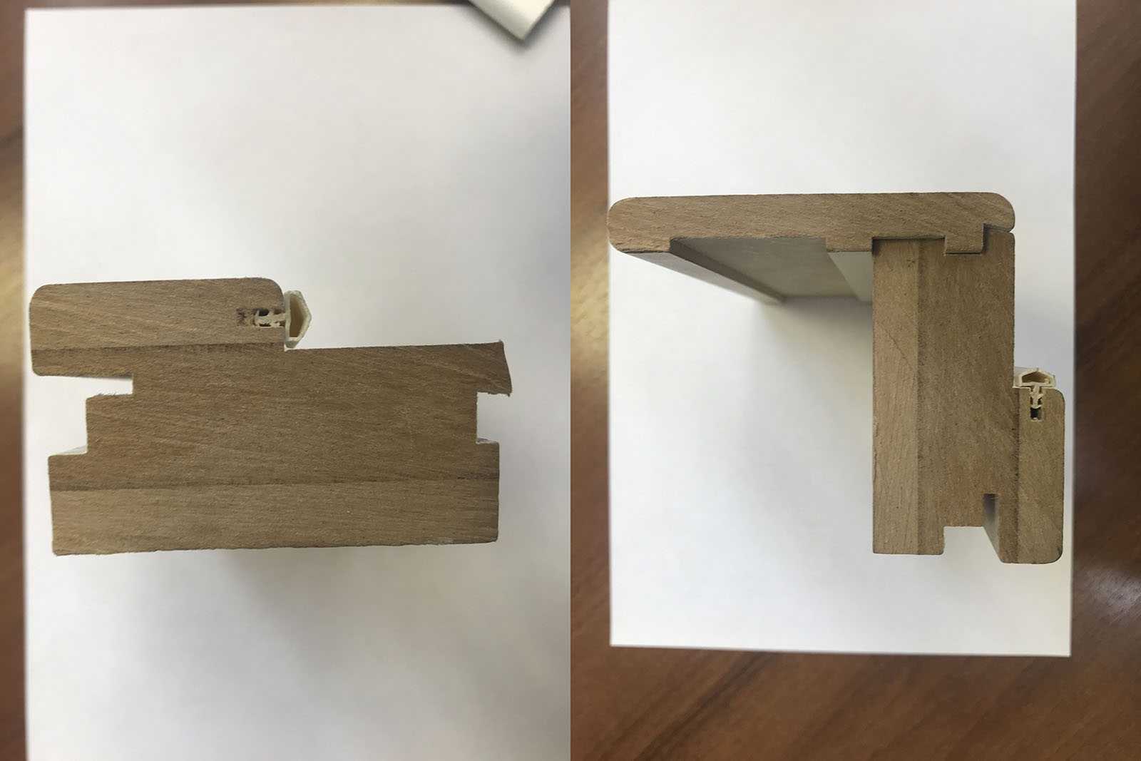 Погонажные изделия бывают стандартными или телескопическими. Стандартный имеет типовую конструкцию, которая фиксируется к основанию на клей либо гвозди без шляпок. Телескопические сложнее, они предусматривают специальные пазы для фиксации доборов и наличников. Обычно подобные наличники имеют Г-образную форму, а специальная полочка позволяет отрегулировать необходимую ширину дверной коробки. Доборы также оборудованы пазом, благодаря этому можно выполнить регулировку проема любой глубины.