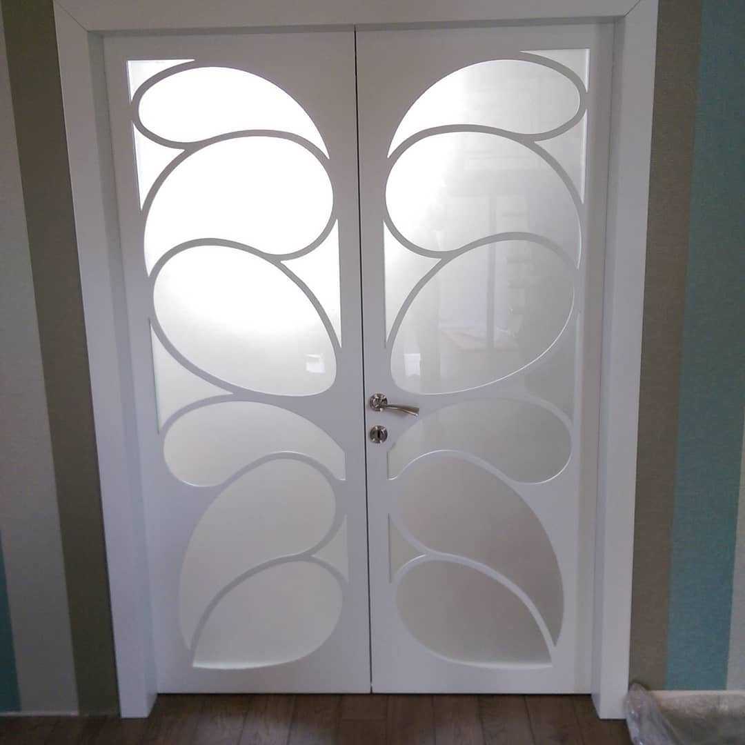 Их часто ставят на кухнях или в гостиных. Украшают интерьер двери с рифленым стеклом, с декоративными элементами на стеклах в виде камней, листочков, цветов и др