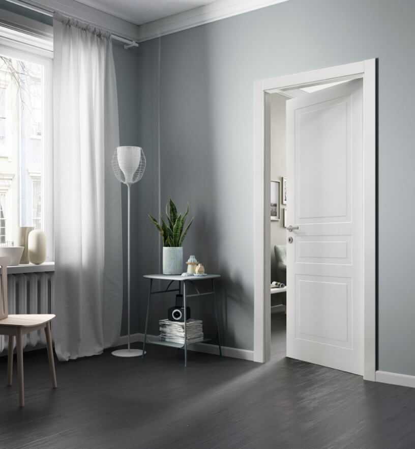 Как сочетать межкомнатные двери белого цвета с остальной отделкой помещений? Очень хорошо, например, смотрится светлое дверное полотно с тёмным, ламинированным или паркетным полом и белым плинтусом. Дверь белого цвета будет прекрасно сочетаться с яркими стенами и полом с оттенком натурального камня, подчёркивая минималистический стиль интерьера.