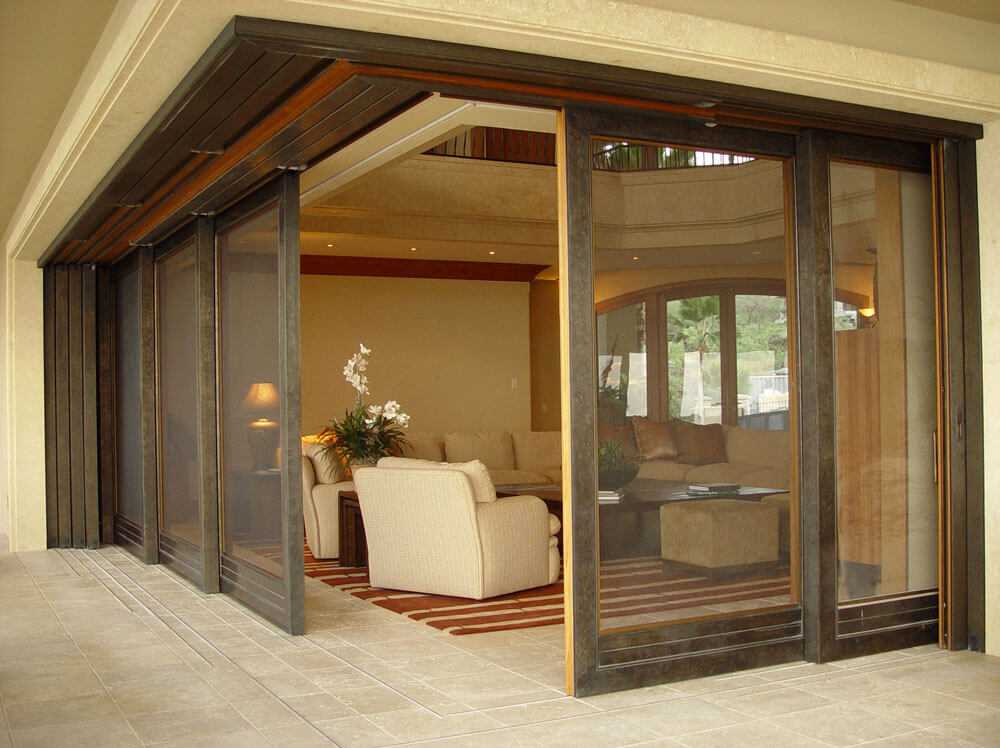 Красиво смотрятся складные двери, открываются в виде гармошки. Выпускаются часто со вставками стекла. Хороший выход при больших дверных проёмах