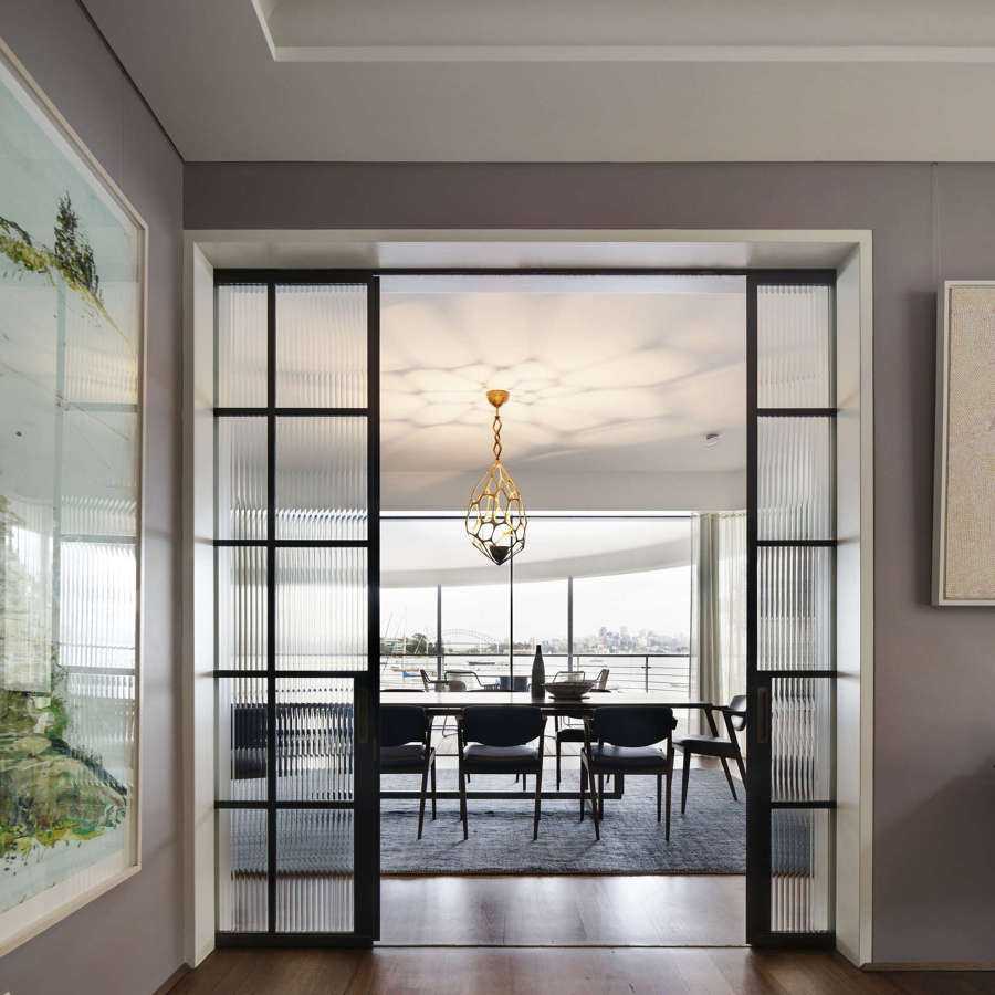Витражи будут пропускать дневной свет, делать обстановку ярче светлее, что визуально увеличит пространство. Такие модели обычно ставят между коридором и залом.