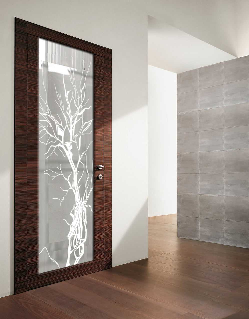 Стеклянные двери подвергаются видоизменению с двух сторон, формируя тем самым полный и насыщенный рисунок. Они могут имитировать витражные стекла с уникальным мозаичным изображением. Для стеклянных дверей сегодня модно использовать стикеры-уголки, позволяющие придать модели стильный вид, не разрушая при этом ее воздушность, прозрачность и невесомость.