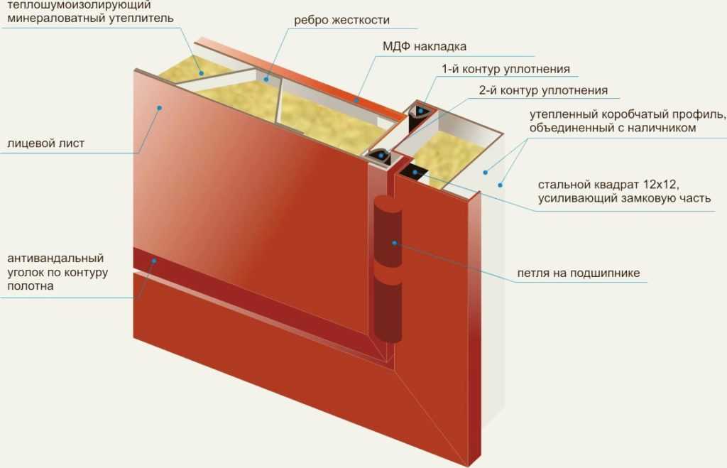 Утепленные двери с терморазрывом изготавливаются таким же методом, что и обычные железные двери, но в качестве теплоизоляционных материалов в них применяются: