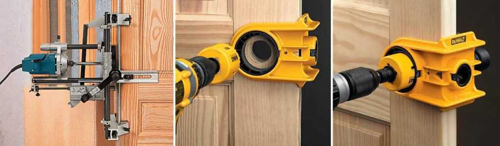 Для монтажа замкового устройства на поверхность дверного полотна под рукой необходимо иметь следующие инструменты: