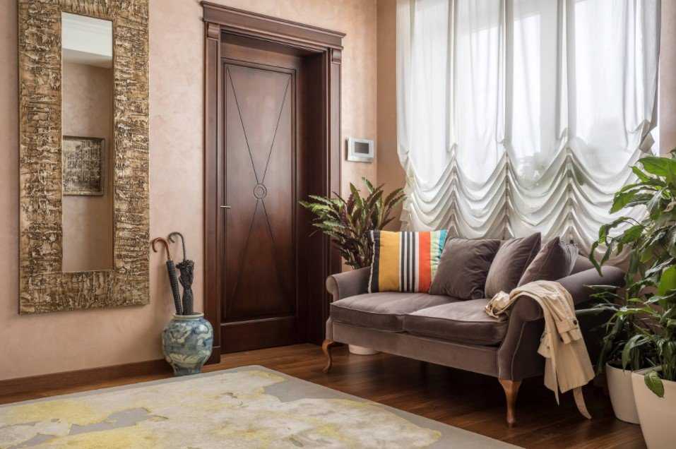 Различные стили, варианты исполнения присущи декоративной штукатурке, которая наносится в коридоре. Наиболее интересные варианты интерьера следующие.
