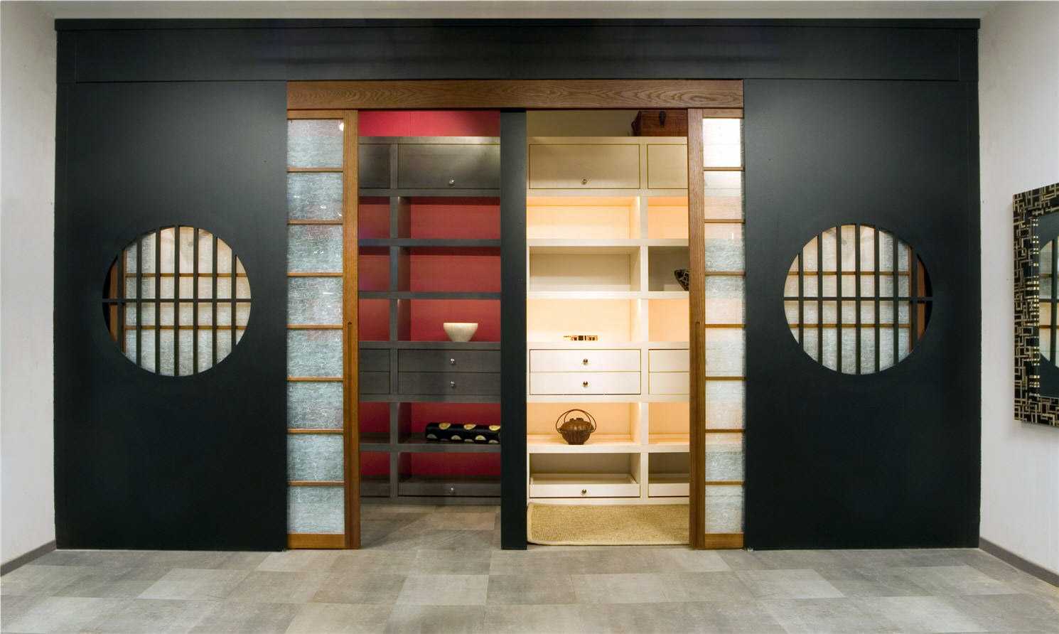 Интересный дизайн гардеробной в японском стиле добавит вашему интерьеру нотки изысканности.