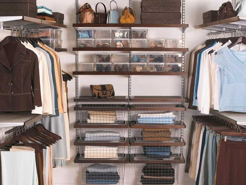Под одежду организуются полочки, причем на них хранятся только те вещи, которые применяются ежедневно, поэтому они будут меняться с учетом изменения сезона года.