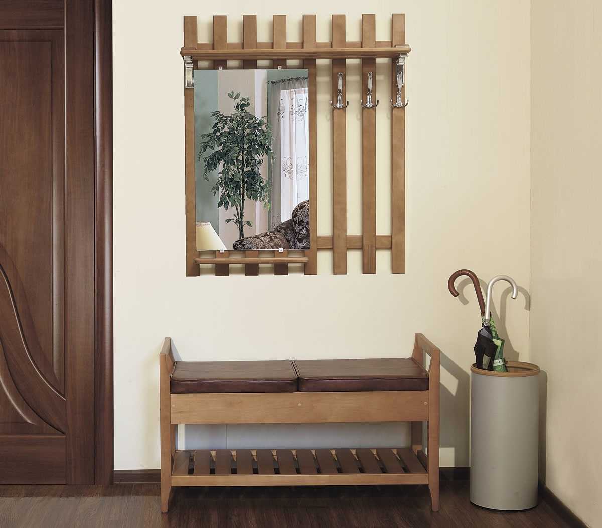 Наиболее подходящими породами дерева является бук, сосна, дуб, береза. Не стоит вешать на деревянные вешалки в прихожей мокрые вещи или зонты, если отсутствует водоотталкивающая пропитка. Дерево может быстро впитать влагу, что приведет к деформациям и последующим растрескиваниям после высыхания.