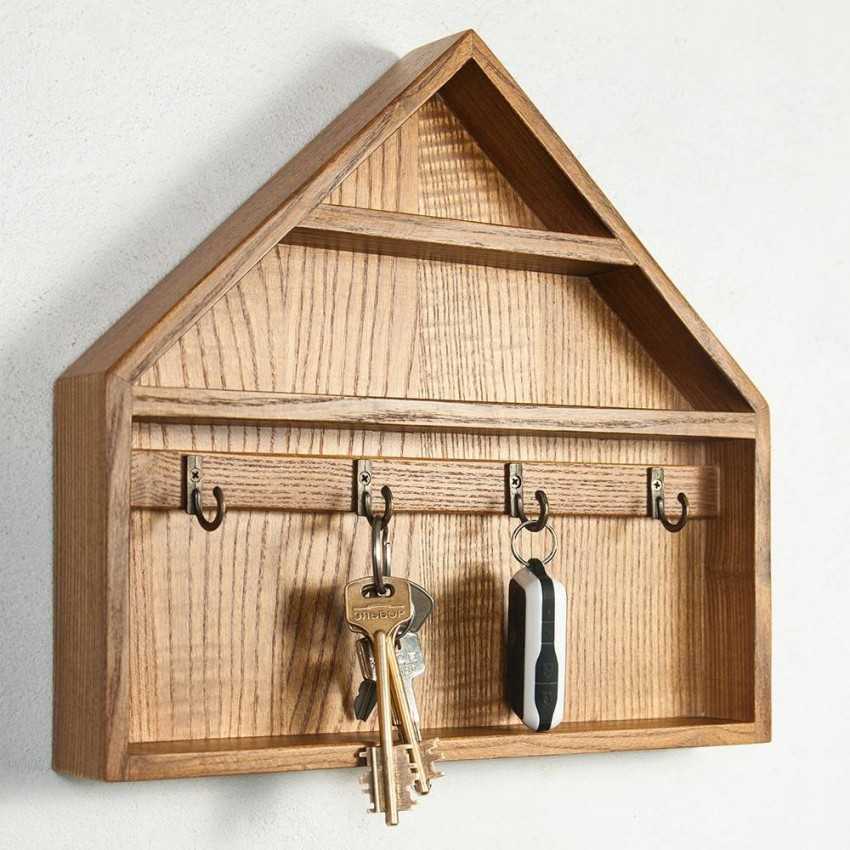 Наиболее простым вариантом изготовления считается планка с крючками. Необходимо взять деревянную дощечку.