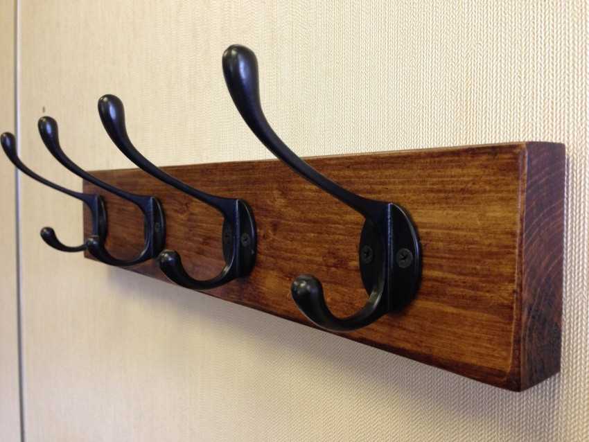 Вместо стандартных крючков можно использовать несколько интересных их вариаций. Часто для этих целей используют старые гаечные ключи. В первую очередь, их необходимо подготовить к работе, то есть почистить, полировать. Далее их загибают, затем привинчивают к планке.