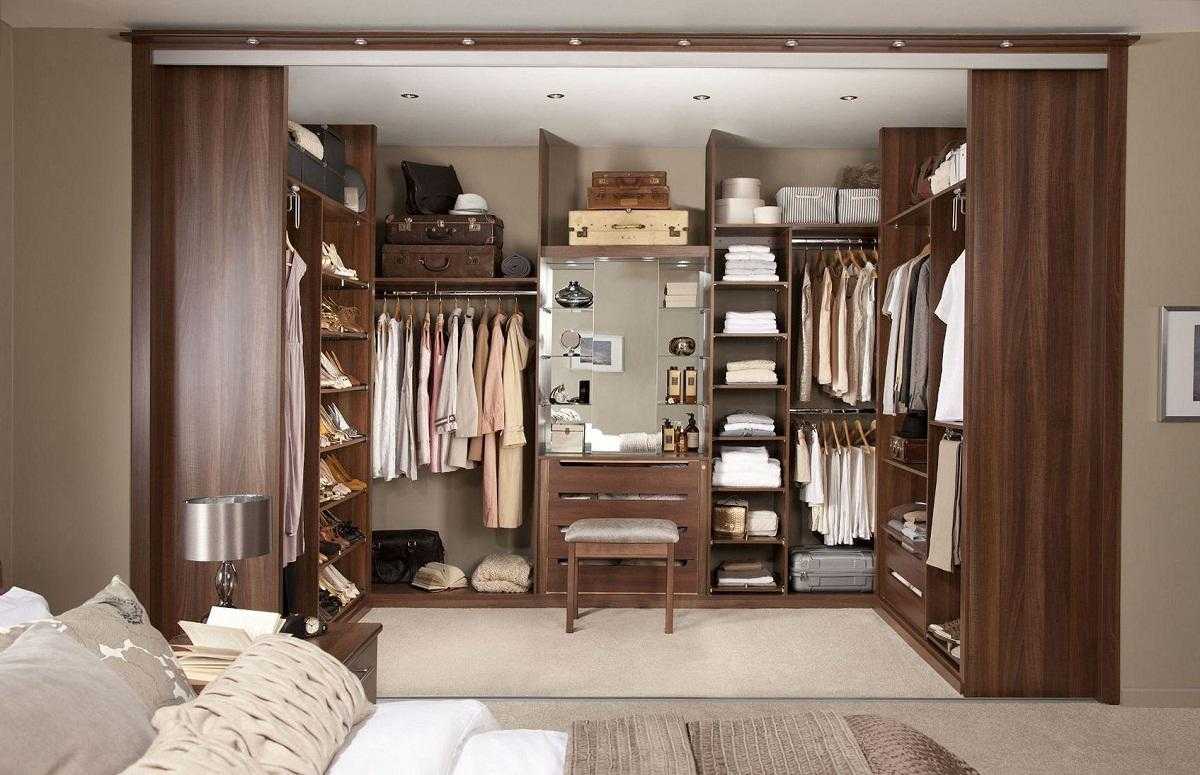 Существуют несколько типов планировки угловой гардеробной, среди которых: