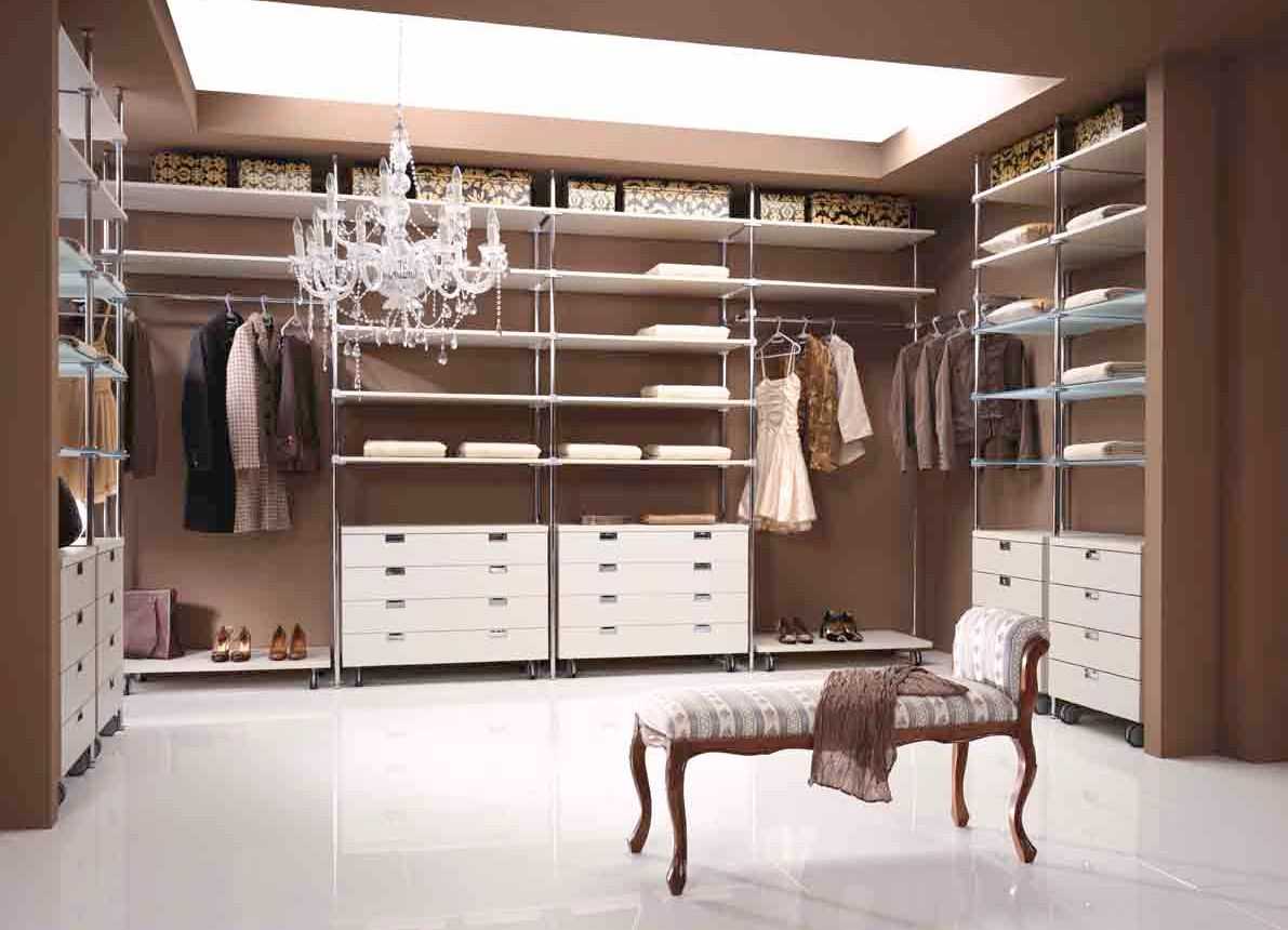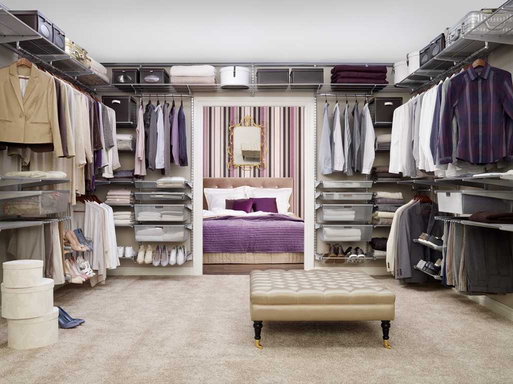 Если гардеробная комната является большой и просторной, то можно обратиться к самым разным вариантам стеллажей. Все зависит только от личных предпочтений. В условиях узкой гардеробной будут удобными выкатные системы, так как они являются весьма вместительными и не занимают много места.
