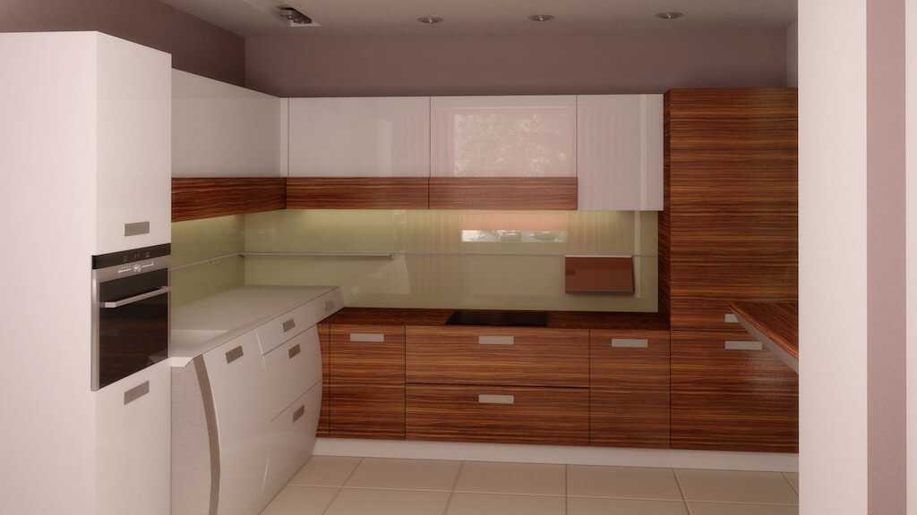 Модели «углом» выделяются наличием глубоких боковых шкафов, мойкой и плитой в углу. Они уместны в прямоугольной кухне и небольшого, и большого размера, а также в квартире-студии.