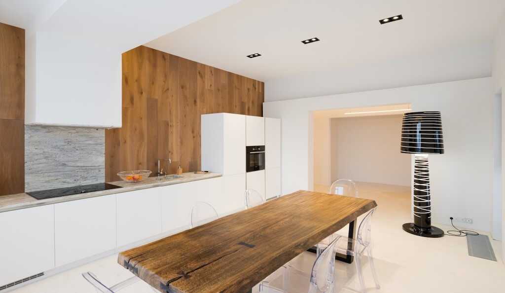 Рассмотрим на интересных примерах, как по-разному может выглядеть белая кухня с деревом.
