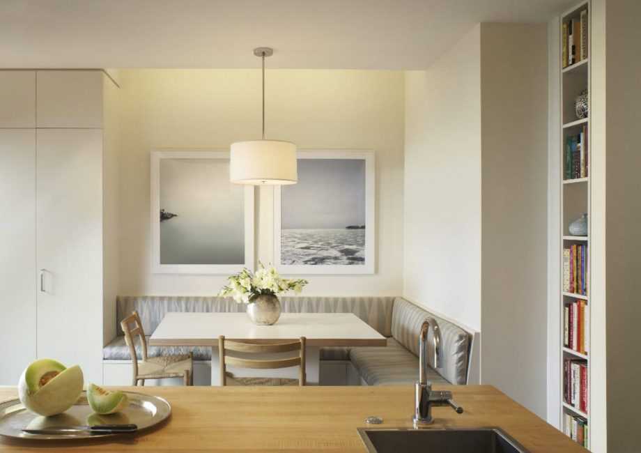 Убедитесь, чтобы изделие не закрывало проход, а длина должна быть не меньше 60 см. Если у вас кухня небольших размеров — откажитесь от моделей с подлокотниками. Для зонирования просторной кухни или квартиры-студии можно использовать угловую мебель, что создаст эффект разделения.