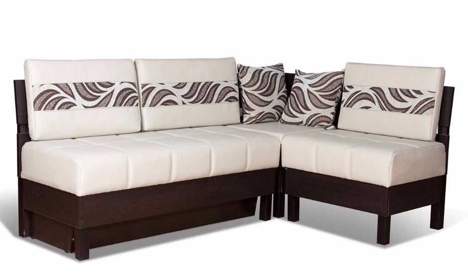 Отличным вариантом для обустройства кухни является угловой диван «Лагуна» с каркасом из древесно-стружечной плиты, раскладным механизмом и вместительным ящиком.