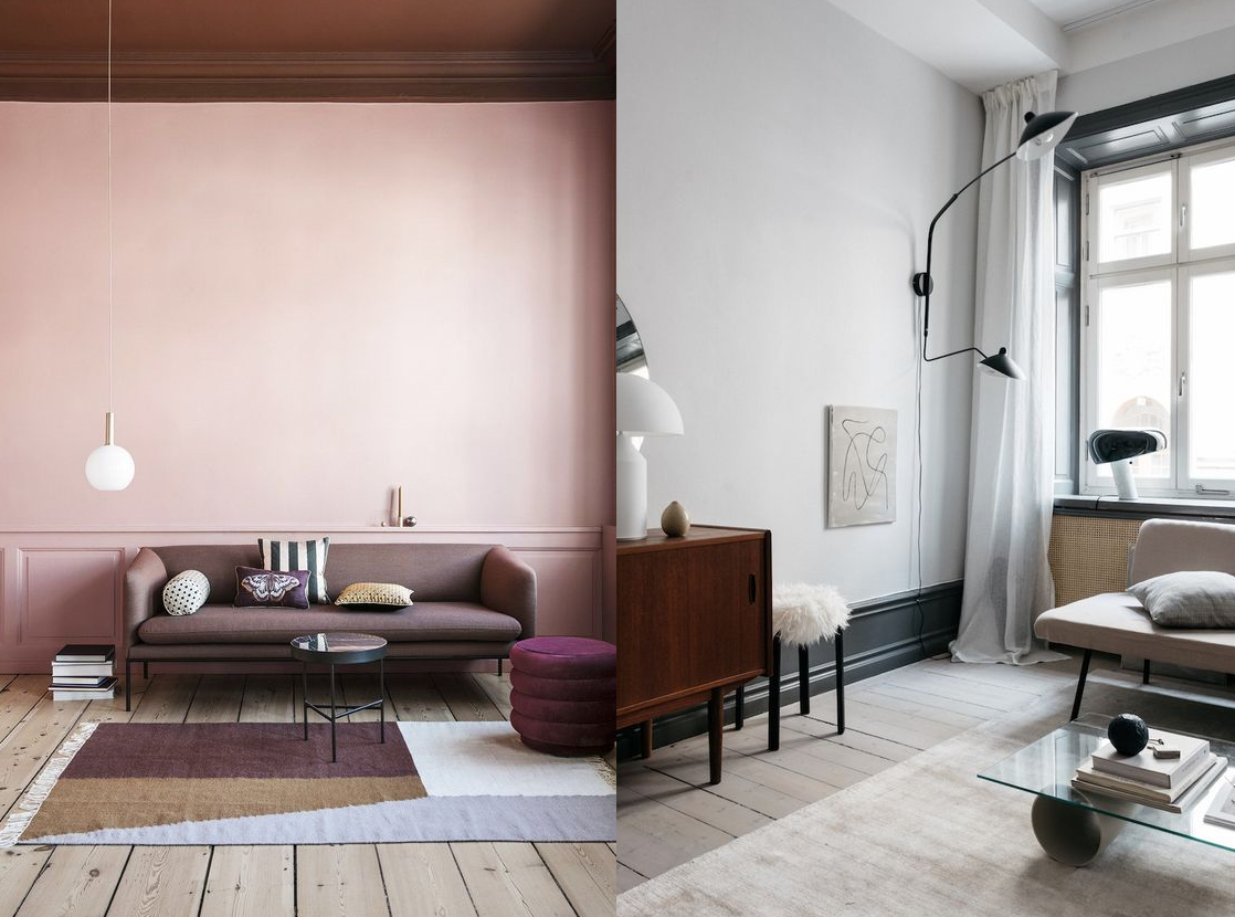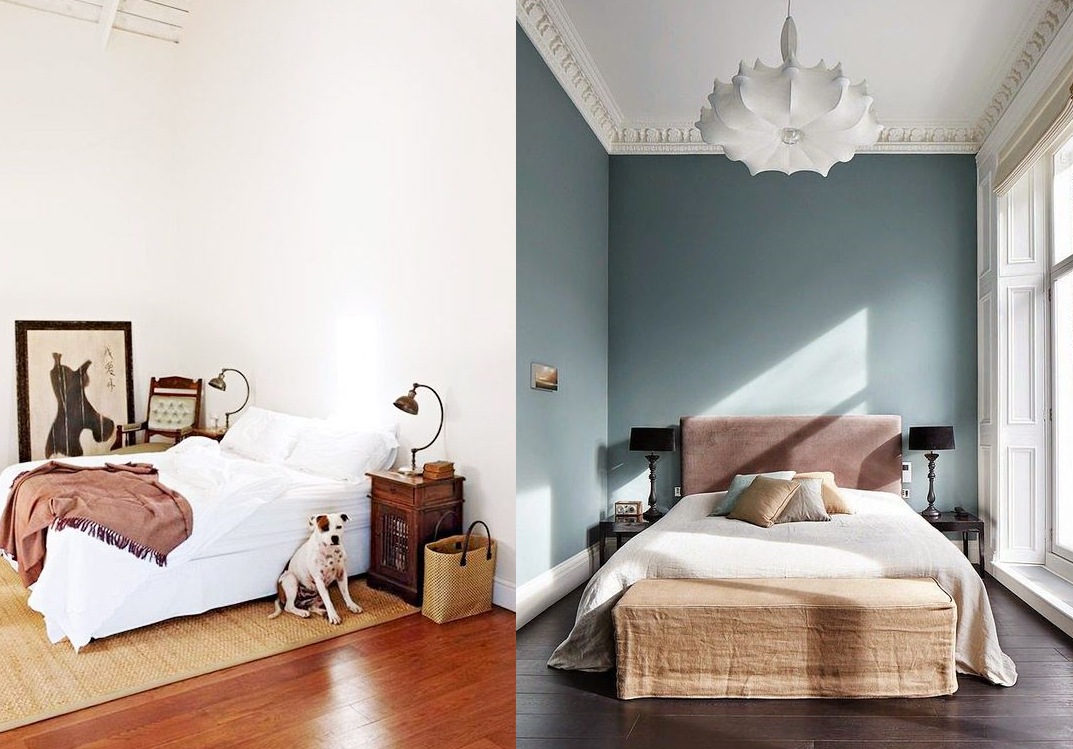 «Воздух» особенно важен в гостиной и спальне, где мы отдыхаем сами, а значит ищём отдыха и для глаз. От нейтральных белых стен можно отказаться в пользу приглушенного сложного оттенка. Яркий цвет будет слишком доминантным — такой «холст» чистым уже не назовёшь.