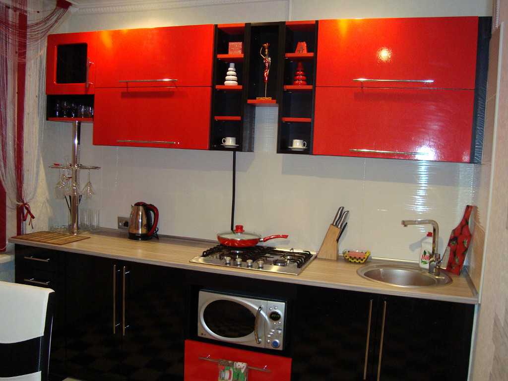 - 3 Большое значение играет форма помещения. Так, например, для узкой и вытянутой кухни угловая комплектация мебели — неразумный выбор. В этом случае лучше отдать предпочтение линейному расположению шкафов вдоль одной стены.
