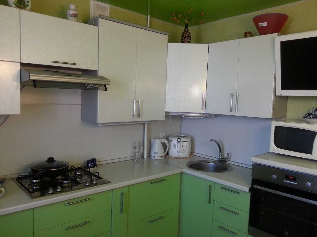 - Г-образная кухня: мебель расположена вдоль двух стен. Такая модификация идеально подходит для маленьких по размеру помещений.