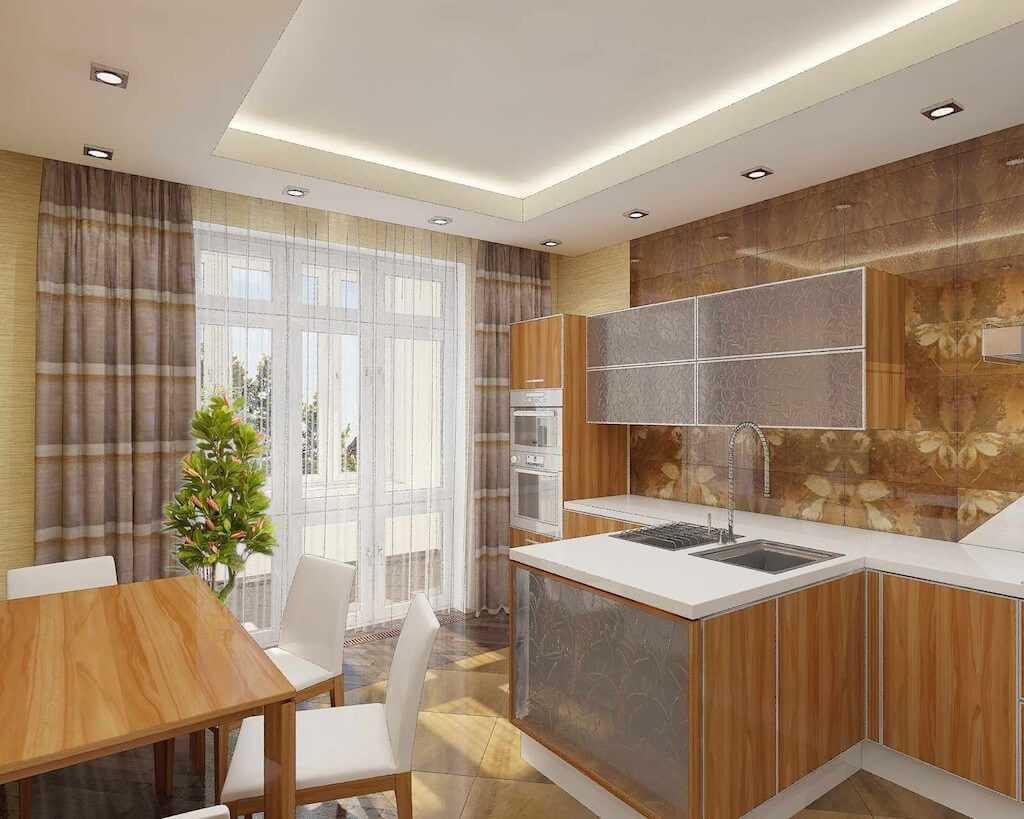 Дизайн кухни 16 кв. м будет получится интересным, если выполните отделку пола с помощью керамической плитки. Этнический орнамент, изображенный на ней, очень точно передаст ассоциацию с такими стилями интерьера, как арт-деко или пэчворк.