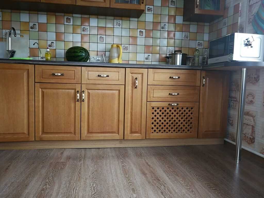 Ламинат и линолеум предотвратят появление некрасивых царапин на кухне. Главное преимущество ламината — это возможность сделать теплые полы, которые, в свою очередь, помогают избавится от чрезмерной влажности в квартире, на избыток которой так уязвим ламинат. Жидкий линолеум выбирают потому, что напольное покрытие получается однородным, без швов.