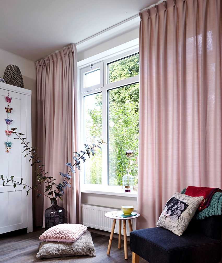 Не стоит выбирать шторы цвет в цвет с мебелью. Выделите что-то одно. Если шторы выступают в качестве цветового дополнения, а не акцента, то пусть они будут чуть бледнее.