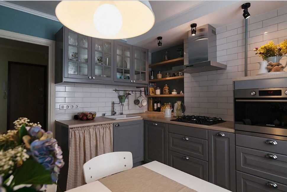 Ситуация переплетается с предыдущим стилем. Прованс любит свет, простор и свободу. В маленькой кухне 6 кв.м. состаренная фурнитура, обилие текстиля или узоров может смотреться неуместно. Но если уравновесить эти элементы и объединить их единой пастельной гаммой, может получиться очень уютный, а также трогательный интерьер. В этой ситуации — при грамотном дизайне небольшая площадь становится достоинством.
