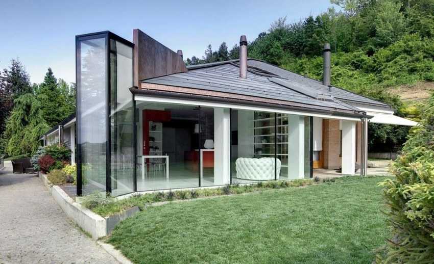 Частные дома с панорамными окнами демонстрируют очень привлекательный и оригинальный внешний вид фасада