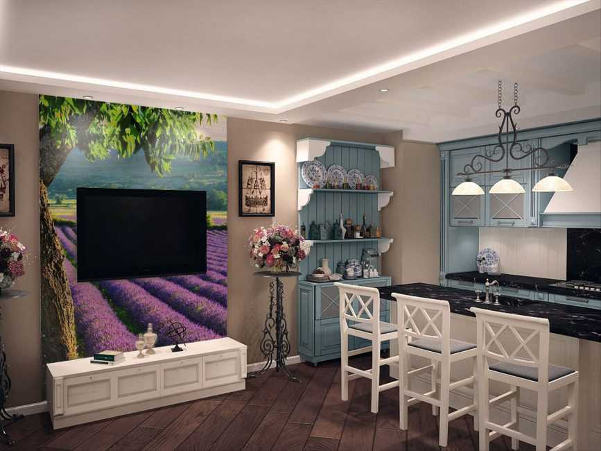 Непрактичны для кухни и текстильные варианты. Но если вы оформляете в стиле прованс кухню-гостиную, то можно отделать ими только какую-то часть, расположенную как можно дальше от зоны готовки.