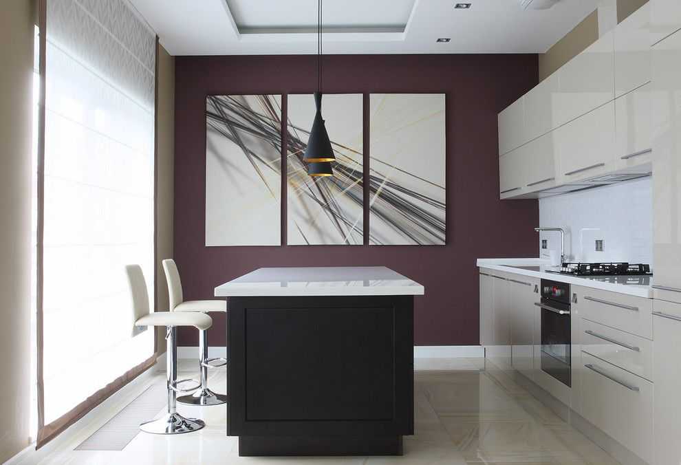 Те, кому натюрморты кажутся банальными, а портреты – скучными, дизайнеры советуют выбирать абстрактные рисунки. Это направление в искусстве, которое может легко вписаться в интерьер любой комнаты, в том числе кухни, независимо от стиля, в которой она выполнена. Здесь может быть изображен оригинальный орнамент или набор геометрических фигур.