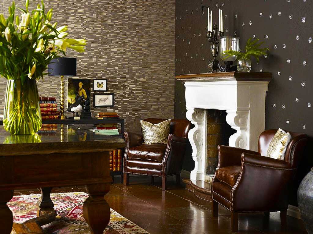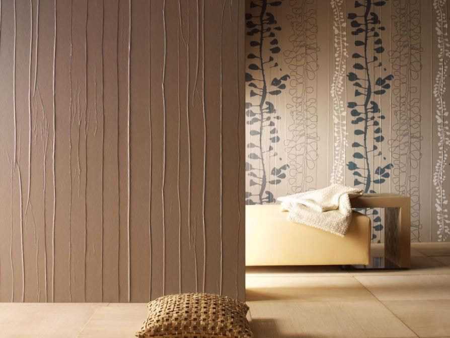 обои без видимого рисунка с фактурными штрихами и элементами можно использовать для гармоничного сочетания с любыми обоями в современных интерьерах, а также в стиле классики.