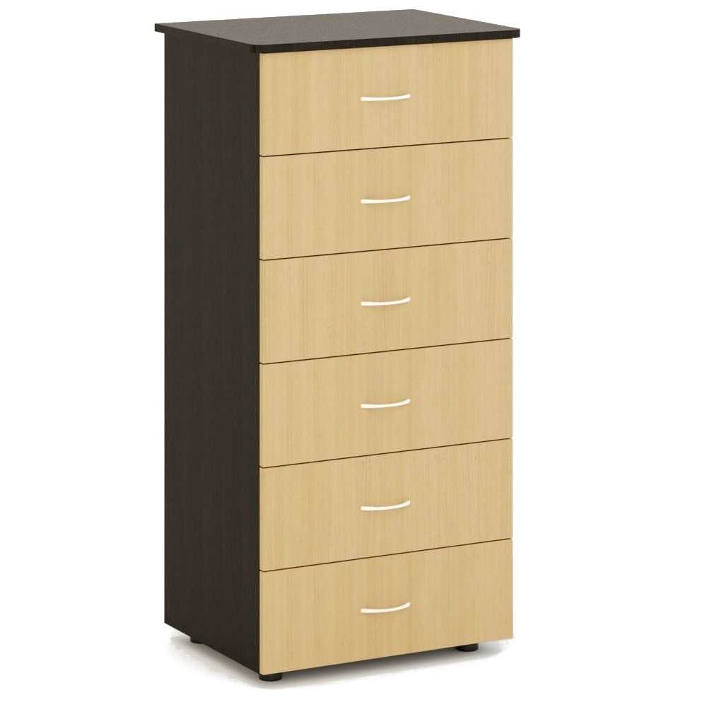 Комод позволяет частично освободить комнату. Одного шкафа купе бывает недостаточно, к тому же не все вещи практично вешать на плечики. В ящики удобно складывать чулочно-носочные изделия, нижнее белье, постельные принадлежности или детские вещи. Можно выделить несколько наиболее распространенных вариантов по высоте: