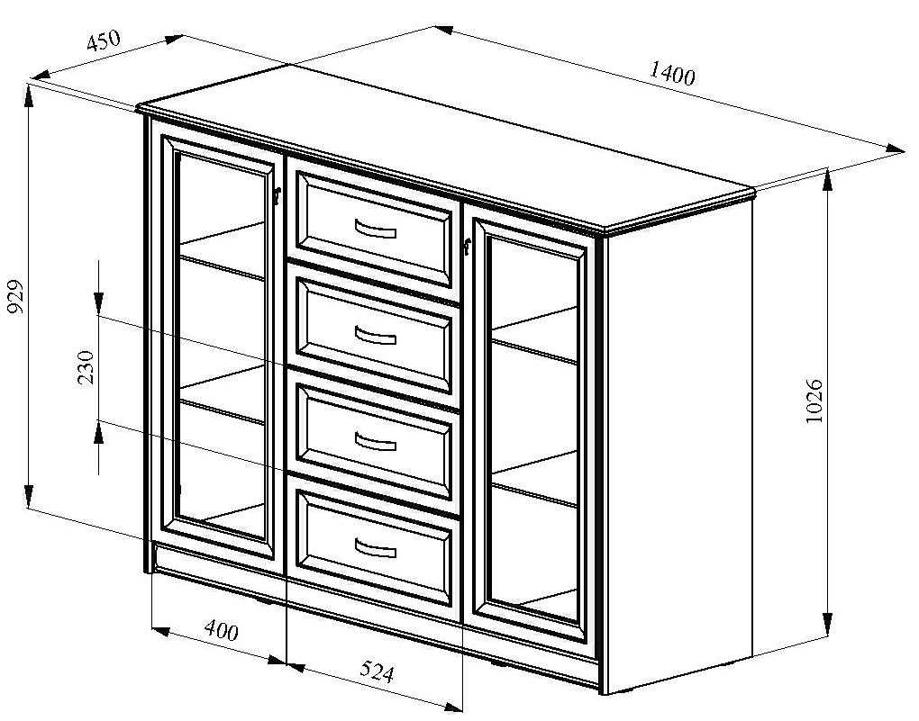 Определяющими параметрами служат размеры комода по длине, глубине, высоте. Для правильной установки мебели нужно учесть форму изделия, предусмотреть, сколько вещей будет в нем храниться. Все размеры при мебельной деталировке приводятся в миллиметрах.