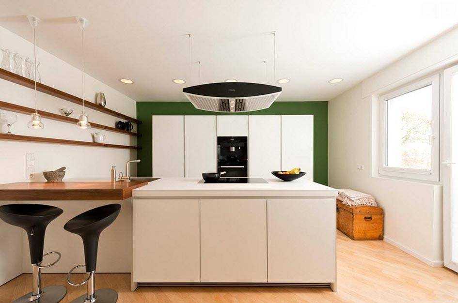 При этом некоторые выделяют и некоторые минусы островной кухни в интерьере.