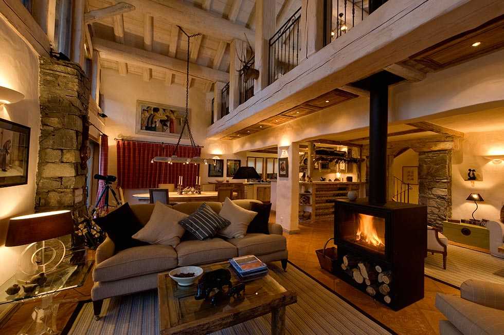 По мнению многих дизайнеров, стиль шале просто не может существовать без камина. Истоки такого рассуждения спрятаны в наличии такого атрибута в охотничьих домиках, находящихся в альпийский горах. Именно отсюда и берет начало данный стиль. Его использовали для обогрева, а часто оборудовали и для приготовления пищи. Камин здесь просто незаменим.