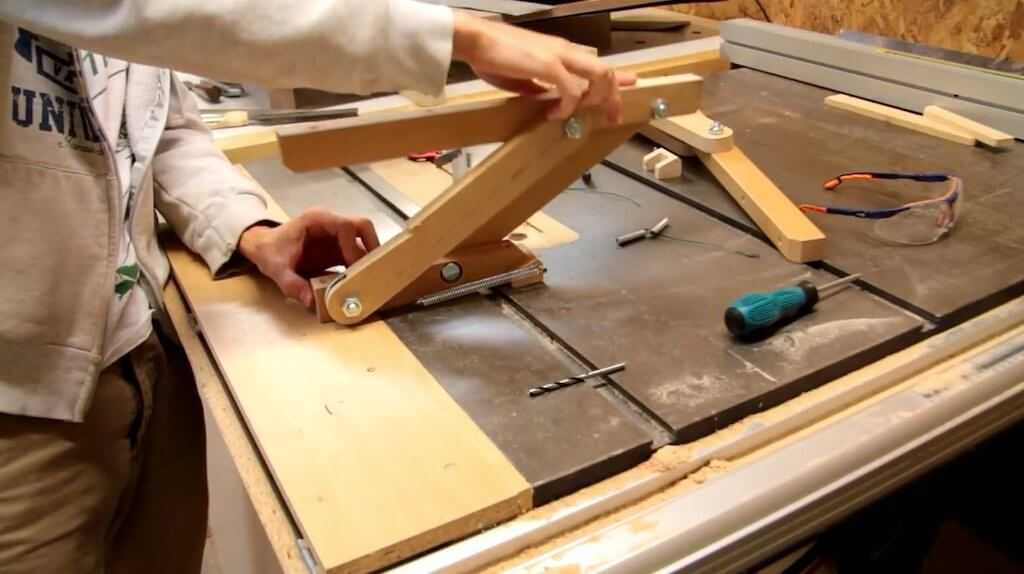 - Главные элементы кухонного стола — крышка и подпорки переносятся с макета на деревянное полотно и аккуратно выпиливаются электролобзиком.