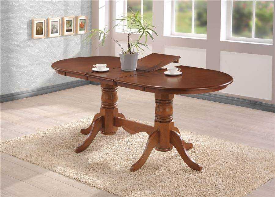 Классический образец. Хороши возможностями установки: в центре комнаты, около стены, в углу. В зависимости от длины столешницы за такую мебель можно усадить большое количество обедающих, при этом не возникает ощущения отчуждения из-за обширной поверхности, и все могут дотянуться до середины.