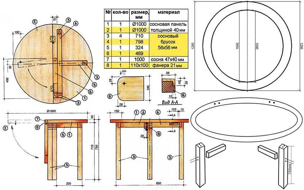 Для самостоятельного изготовления деревянного кухонного стола потребуется приготовить все сборные элементы: