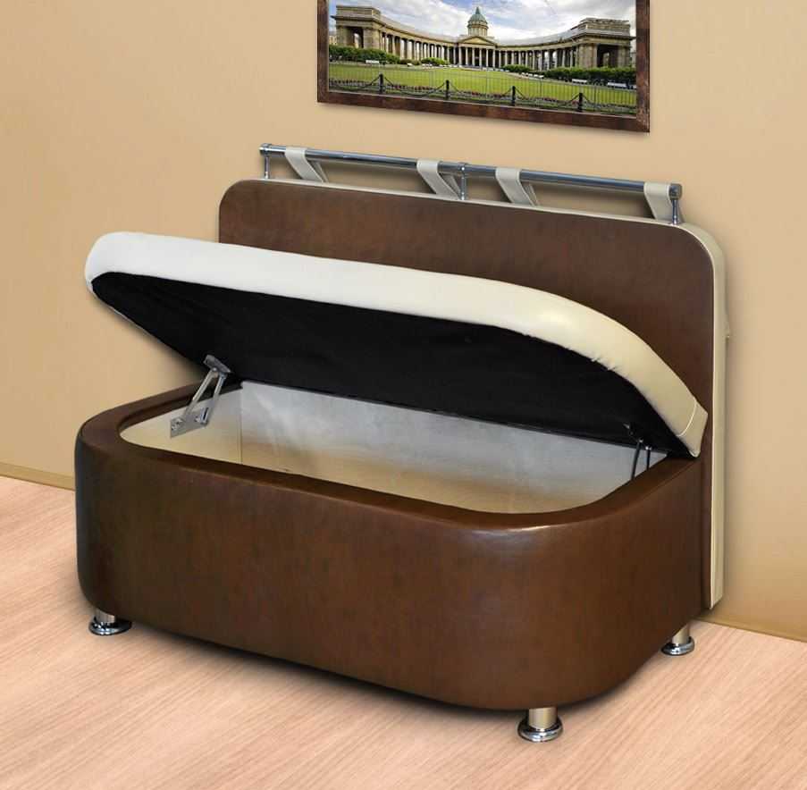 Совет: если вы часто планируете использовать объемные ящики под сидением, то отдавайте предпочтение мебели с подъемным механизмом, расположенным сбоку – так открытию не будет мешать обеденный стол.