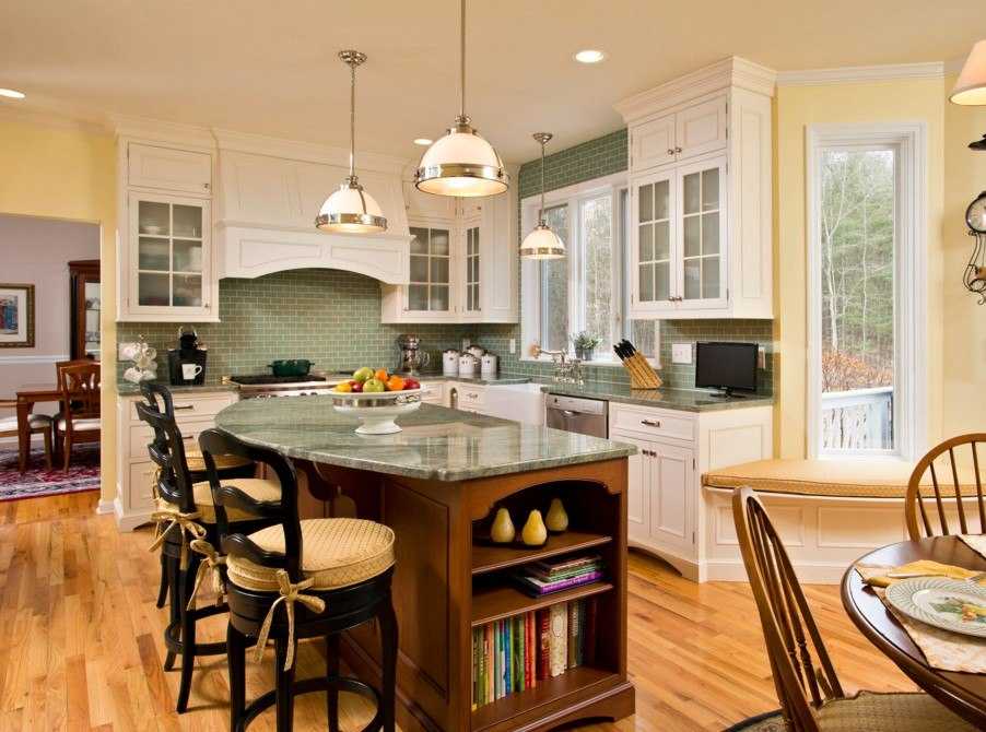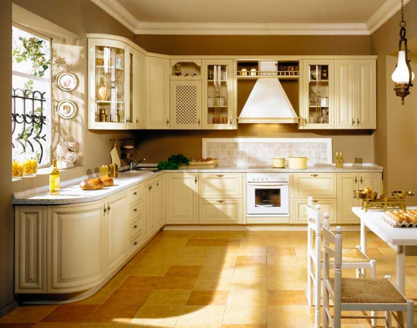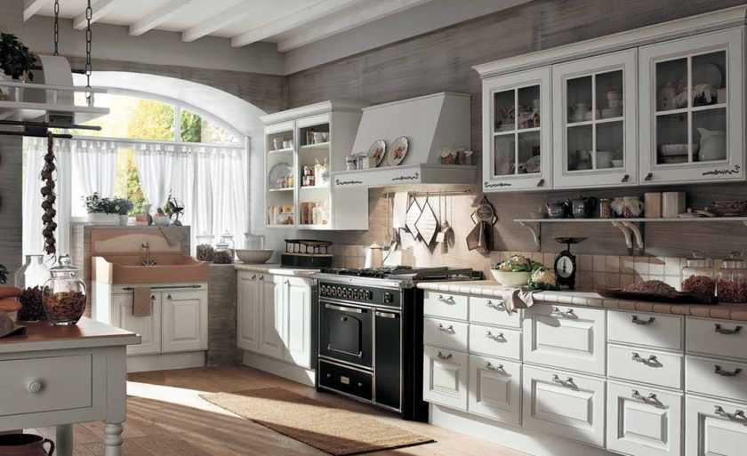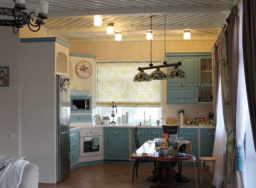 Многие модели украшают вставками из фарфора, абажурами из стекла или ткани. Помните, что на такой кухне должно быть много света: естественного и искусственного.