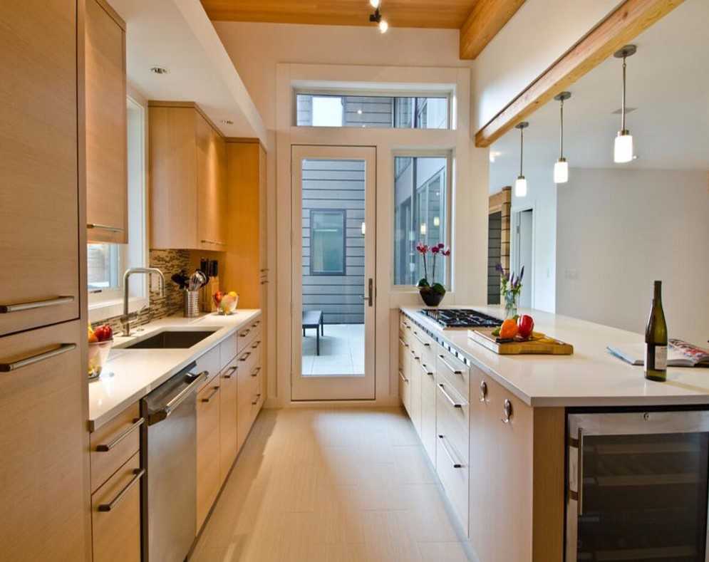 В этом случаев можно реализовать практически любую планировку, но отказавшись при этом частично от верхних шкафов.