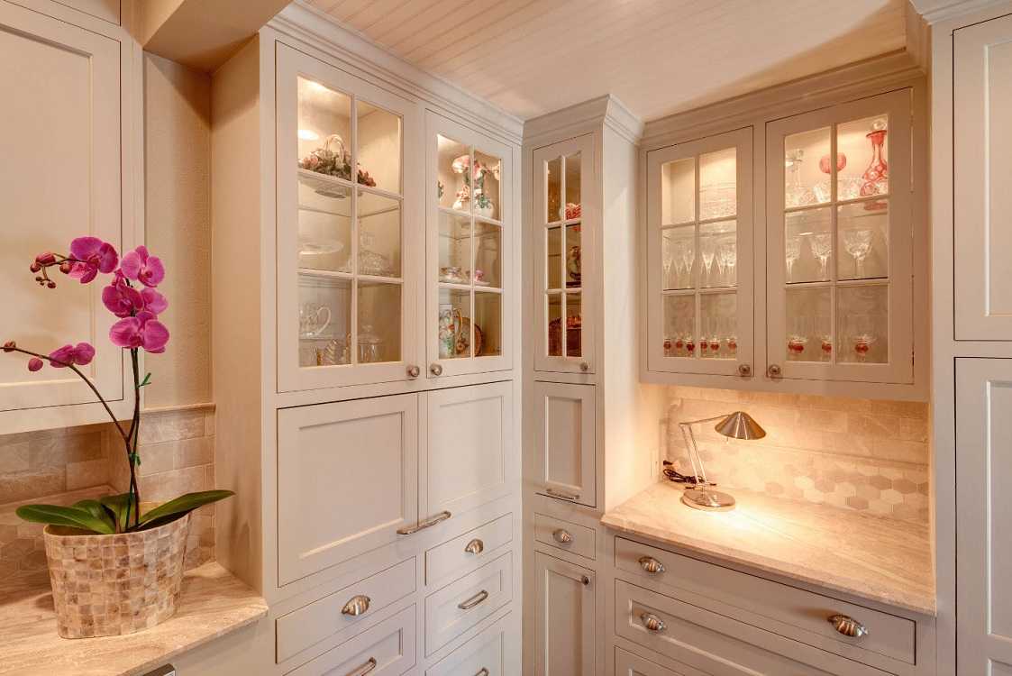Хранение посуды — в нем много полок, на которых свободно размесится большое количество самой разной посуды. Чайный или столовый сервиз, который не используется ежедневно всегда, будет под рукой и в случае необходимости все легко достается. Размеры и количество полок можно менять по желанию хозяйки.