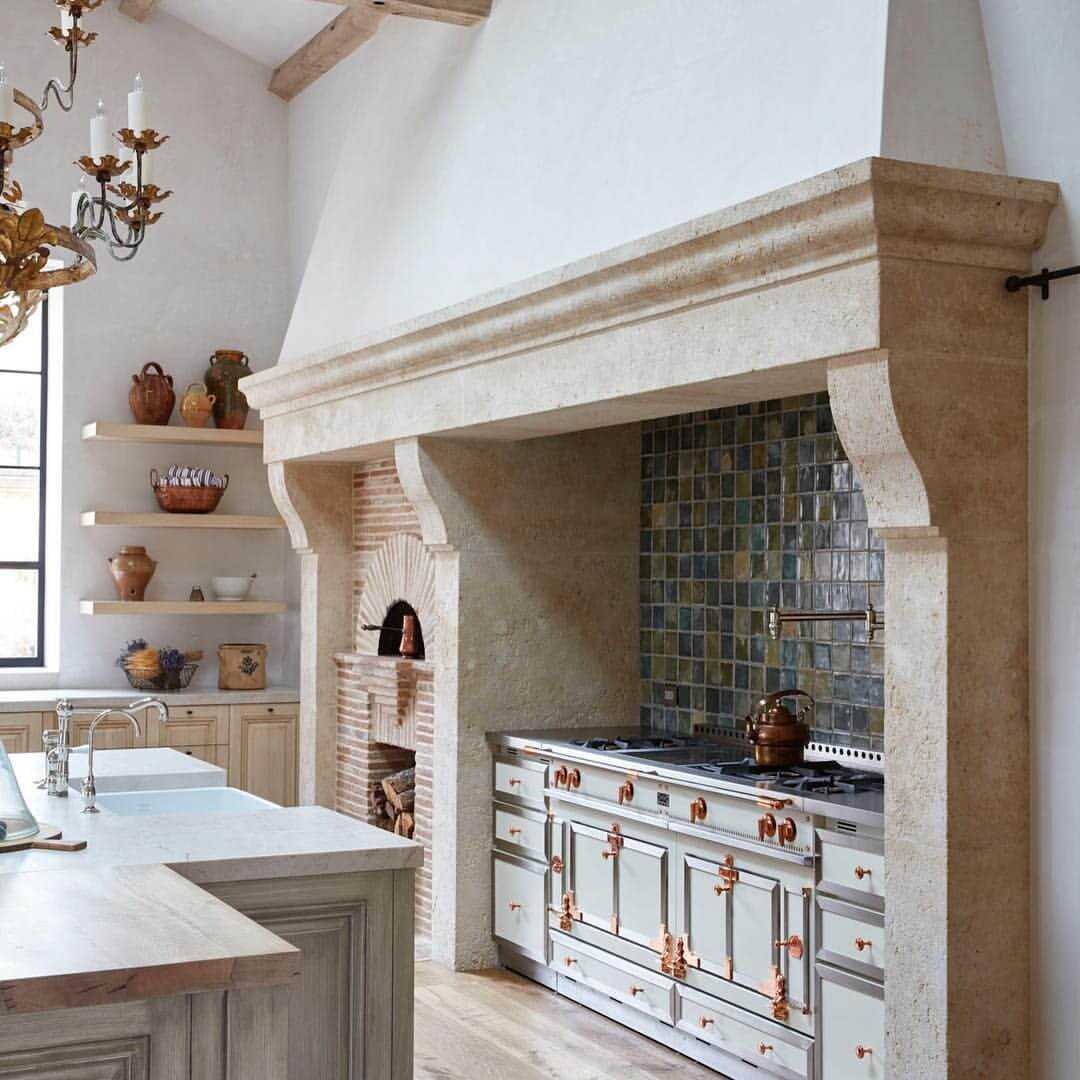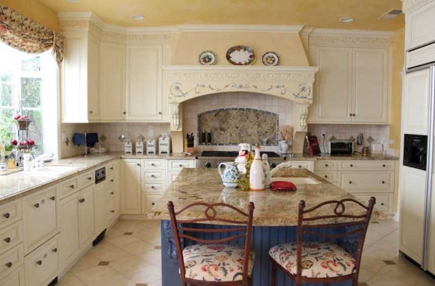 Чистый белоснежный или холодный серый редко используются в уютных интерьерах прованса. Зато здесь торжествуют все оттенки бежевого: от бледного сливочного до насыщенного кремового, цвета кофе с молоком или сероватого таупа. На такой кухне всегда будет царить атмосфера тепла и уюта.