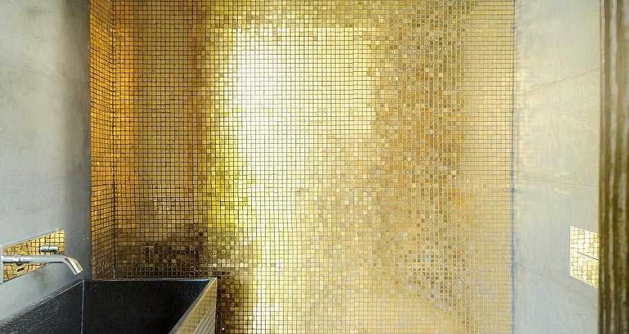 Почему стоит выбрать золотую плитку мозаику для ванной комнаты: