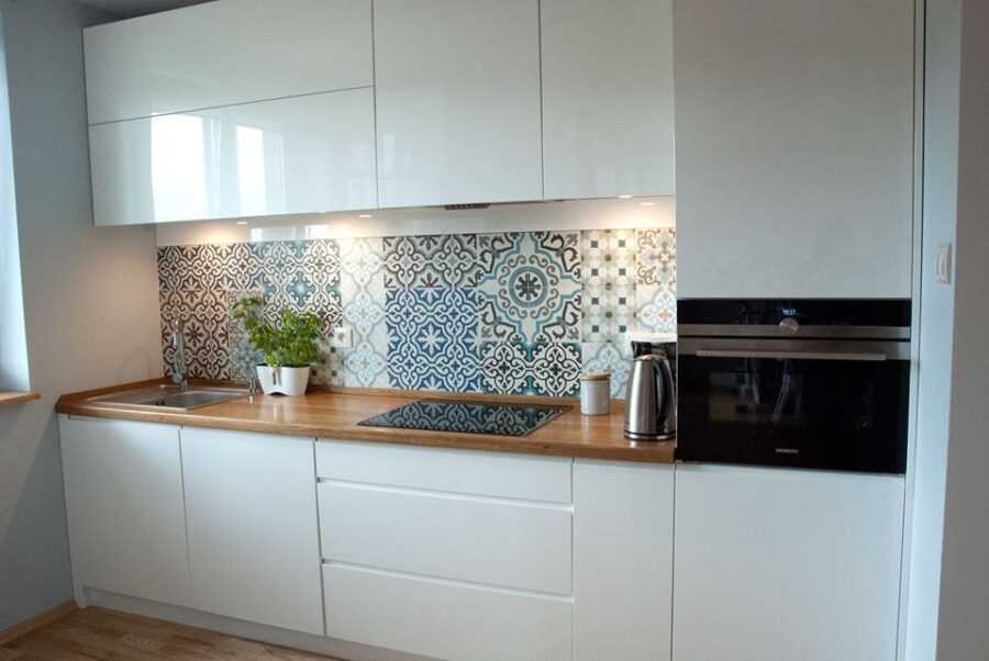 - Универсальным считается белый цвет фартука – такой декор легко сочетать с другими интерьерными цветами, кроме того, его легко обновить, используя интерьерные наклейки;