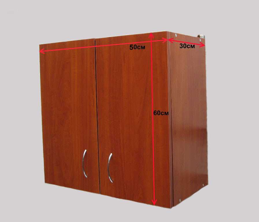 У настенных шкафов размеры совпадают с напольными по ширине. Хотя сейчас возможны и иные схемы – дизайнерские решения основываются на разнице в размерах, что делает интерьер оригинальнее. Глубина настенных шкафов достигает 30 см. Высота по стандарту – 71,5 см. Но, если разрабатывается макет маленькой кухни, то можно увеличить высоту настенных шкафов. В этом случае вносятся изменения в схемы.