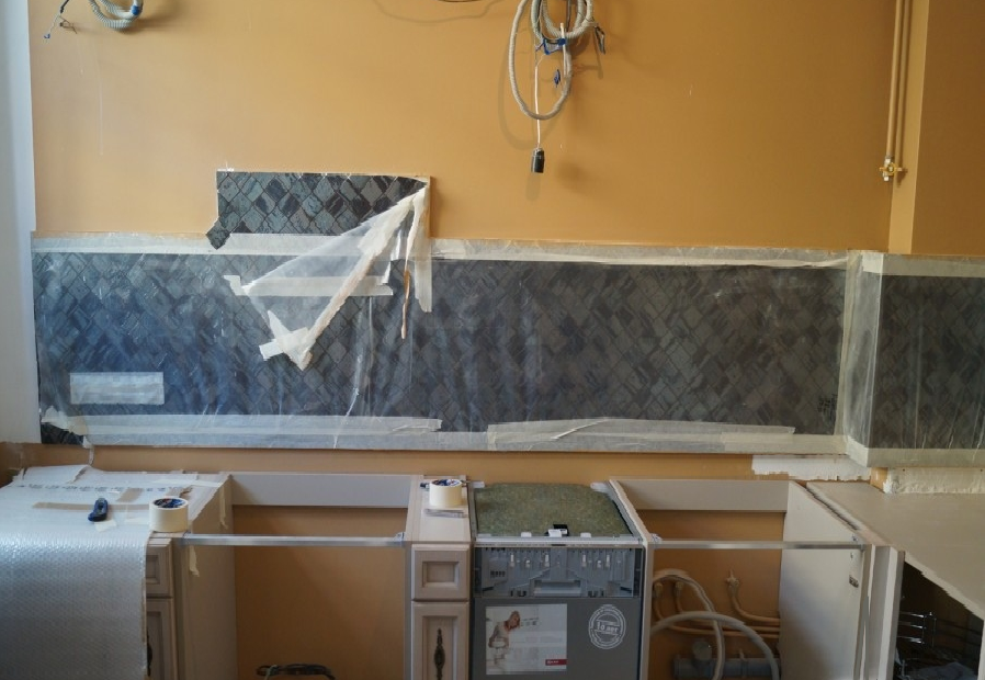 Непосредственно перед сборкой гарнитура необходимо убедиться в том, что у Вас на кухне ровные стены. Для этого нужно взять уровень и приложить его ко всем четырем стенам в разных местах. При необходимости нужно сделать выравнивание стены с помощью штукатурки или поклейки гипсокартона. После этого рекомендуется установить на стены так называемый фартук кухонного гарнитура (если его еще нет).